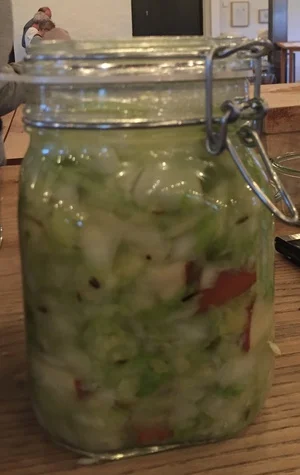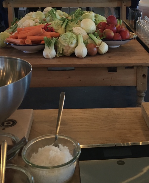 Salt, plants and time is basically all what’s needed in most fermentation recipes. The principle is this: If you, for instance, have a cabbage, an apple and a cucumber, that you know you won’t eat before it rots, you chop them up, weigh, add salt, massage until the veggies releases the juice, put it in canning jars and leave for a few weeks.