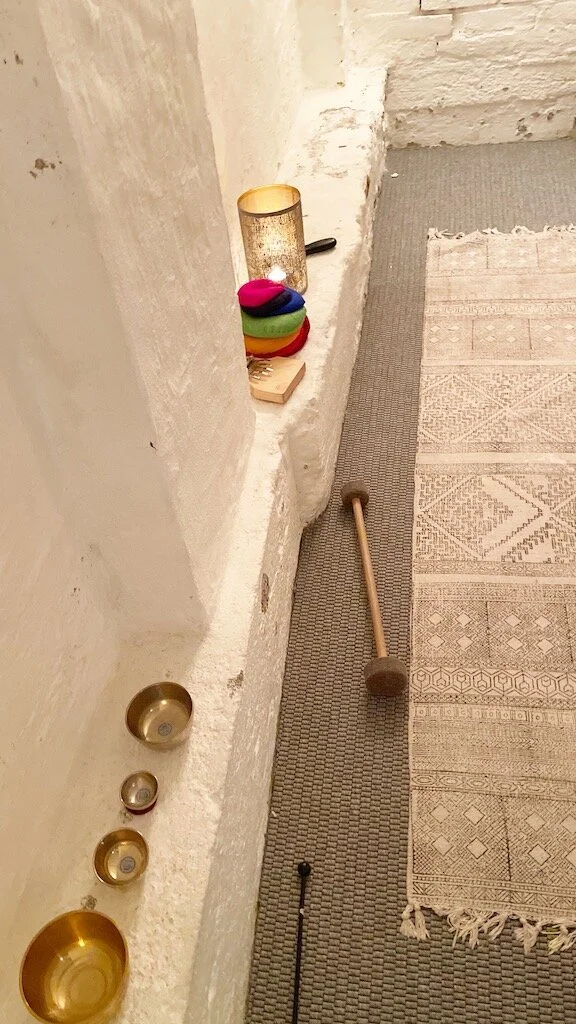 The sound massage therapist - Christina - gave the gong some proper strokes, then turned around and blew all the singing bowls placed on and around me. It triggered powerful vibrations and loud unrhythmic timbres that I could feel deep down in my bones. My logical thought amid this sound storm was that this couldn't be de-stressing to the body. Synchronously with that reflection, I also noticed that my body was in no way tense.