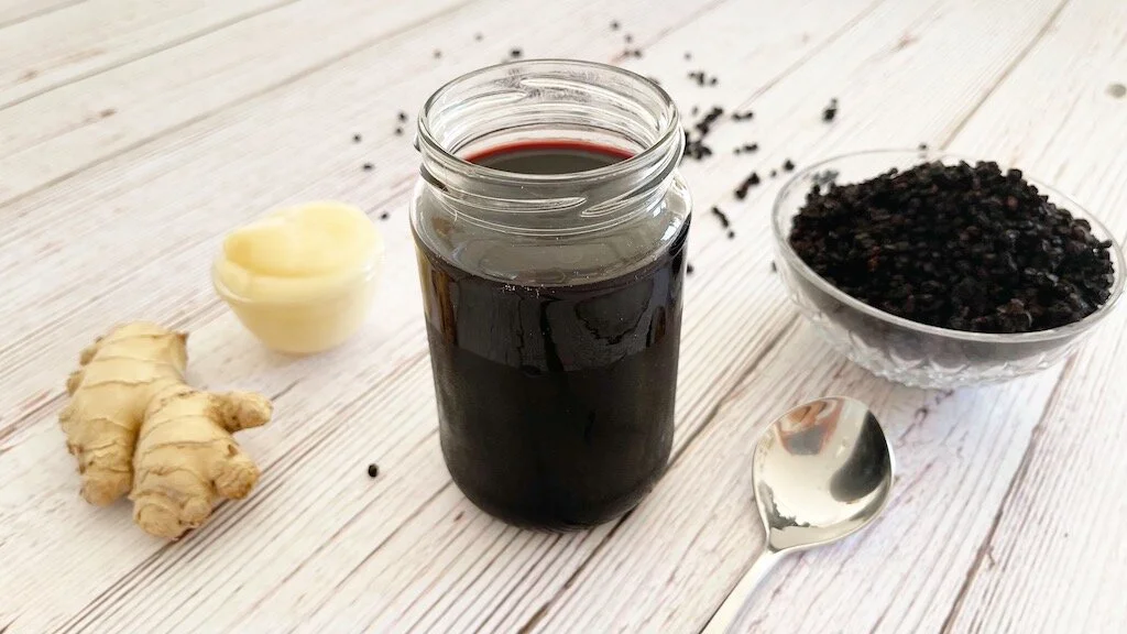 Try my delicious and simple recipe for elderberry syrup below ↓