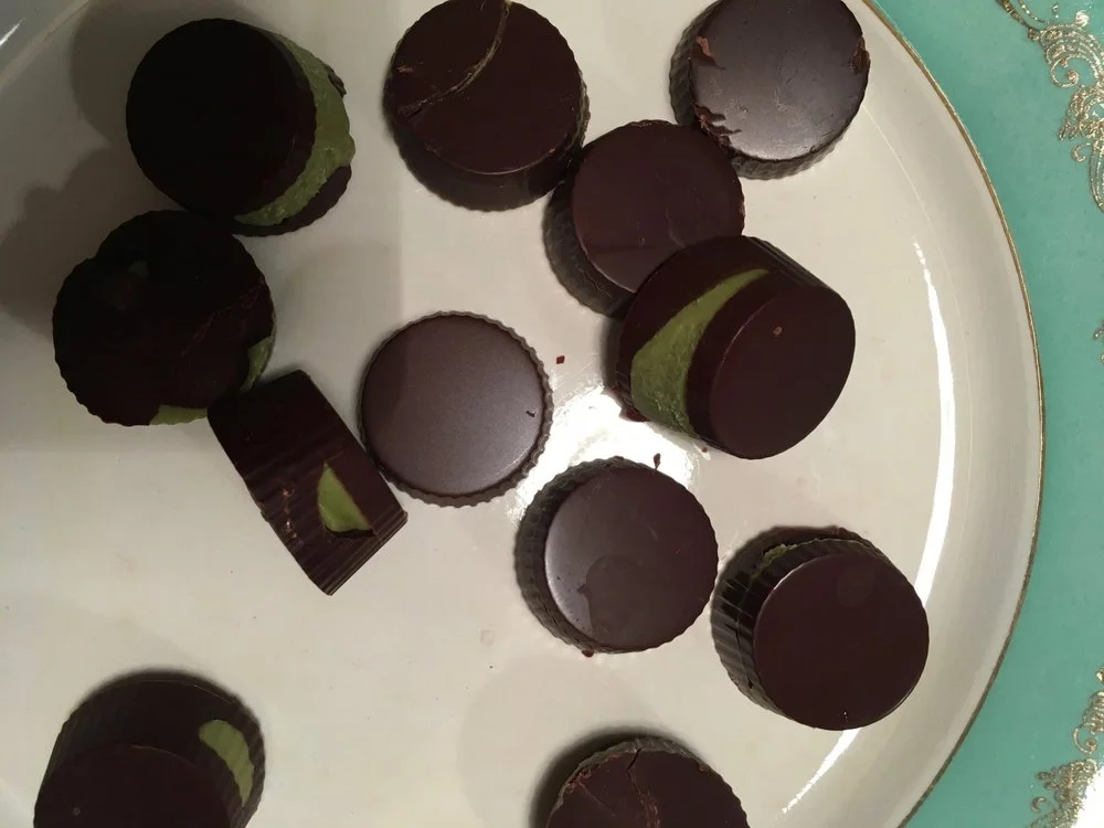 Mini cashew-matcha-mint-chocolates with the perfect ”crack”
